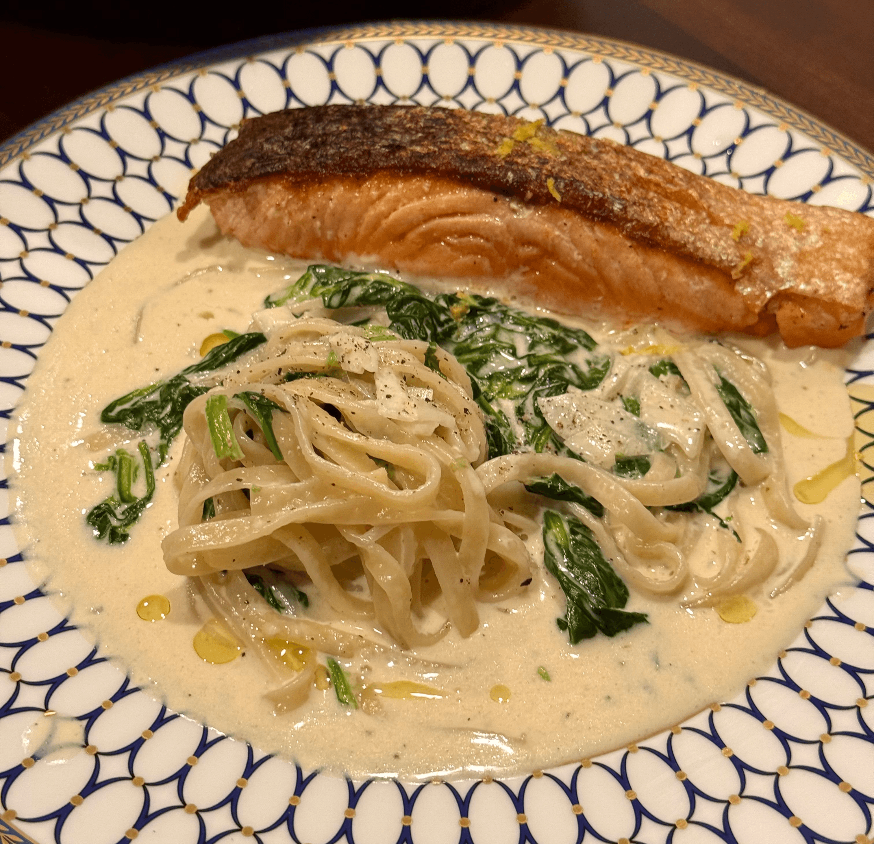 I enjoy trying new recipes and improving on failed dishes over multiple attempts. My proudest dish so far is salmon spinach pasta, which I perfected after four rounds of experimentation!